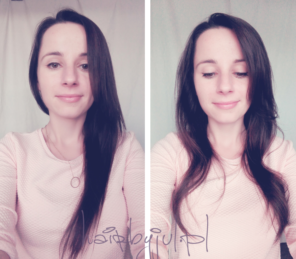 Włosy są lekko, ale ładnie pofalowane, odbite od nasady. Z drugiej strony mam wrażenie, że fryzura zaraz oklapnie. Może tapir i lakier zrobiłyby robotę, ale dajmy już tym włosom trochę wytchnienia i tak przecierpiały swoje w starciu z lokówką…
